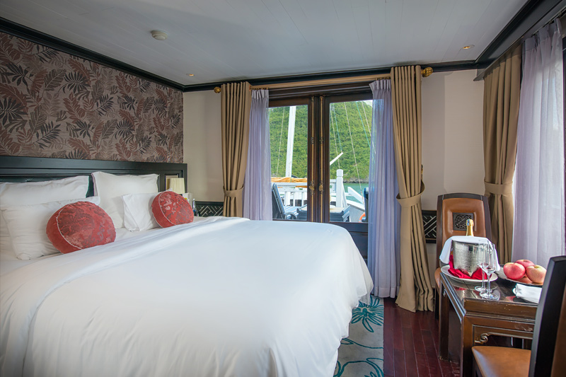 • Personal safety box • Complimentary mineral water • Slippers • Wardrobe • Life jacket • Fire extinguishers |