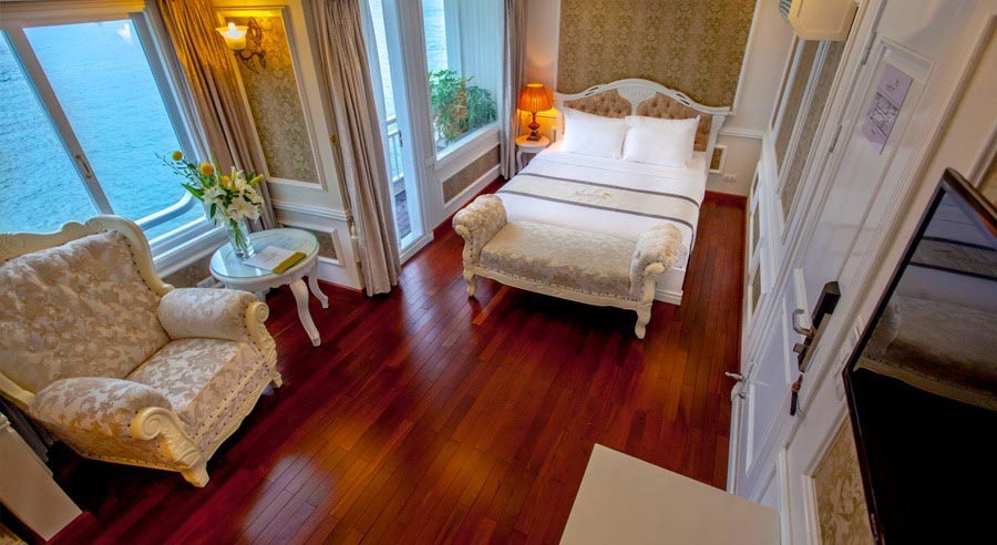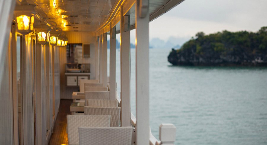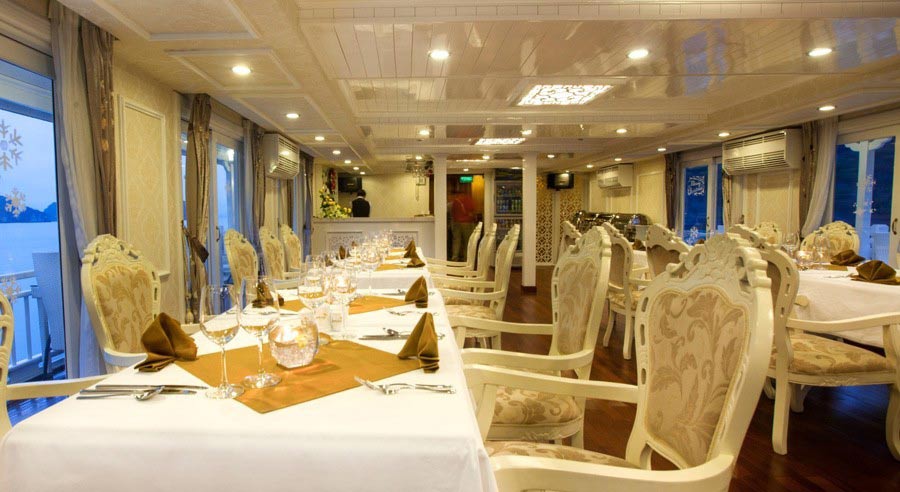 20:45 – 12:00: Your free time to relax with an exotic cocktail or whatever takes your fancy. Our bar has a wide range or wines, beers and liquors and is always a welcome sight for guests after a day on Halong Bay. Order a specialized massage in room. Choosing with other activities boat cruise such as watch documentary movies, squid fishing or simply relax on our roof top deck under the cover of a star filled sky.